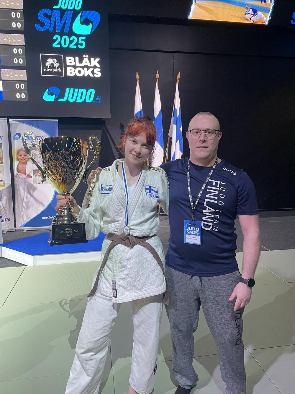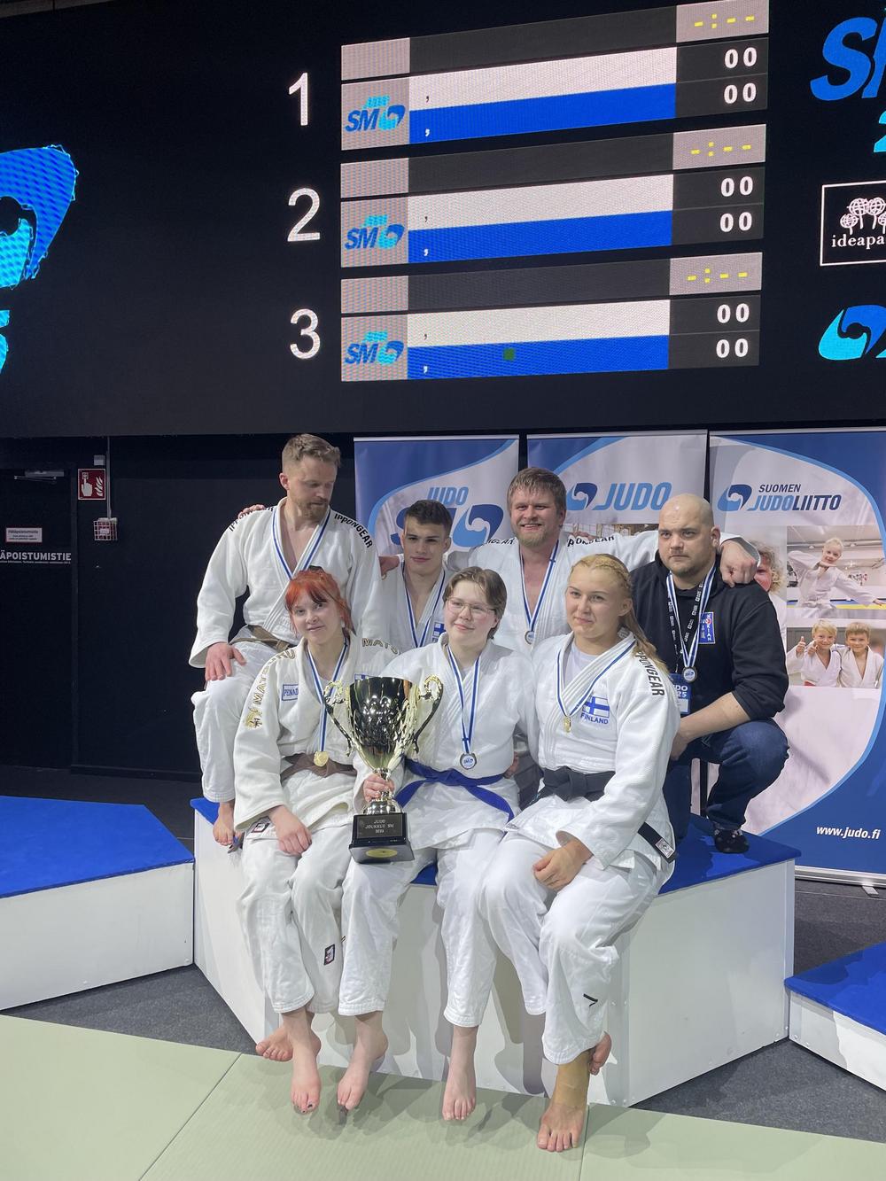 Judon SM-viikonloppu jatkui Lempäälän Ideaparkin Bläk Boksissa sunnuntaina, jolloin ohjelmassa oli veteraanit, parajudo, kata, U21-ikäluokka ja joukkuekilpailu. Näistä U21 on Essin oma ikäluokka ja Eemelinkin piti osallistua, mutta sairastumisen takia häneltä jäi kisat väliin. Joukkuekilpailussa Essi oli pyydetty mukaan Nokian Judon joukkueeseen lainanaiseksi, joten työnsarkaa riitti koko päivälle. Joukkuekisa eli mixed teams sisältää 3 mies- ja 3 naisjudokaa, jotka ottelevat toisiaan vastaan. Voittava joukkue määritetään otteluvoittojen ja pisteiden perusteella.